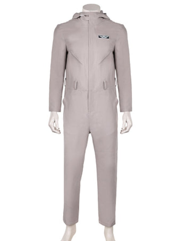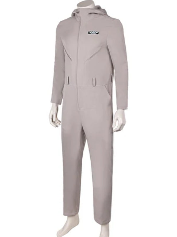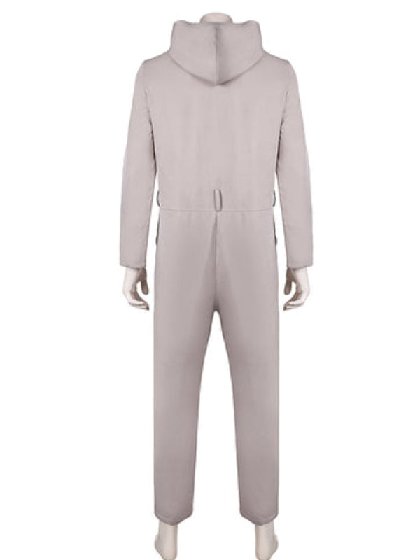 The David Jonsson Alien Romulus 2024 Jumpsuit has a soft, cozy viscose lining and premium cotton construction. The White Cotton Jumpsuit has two side pockets, a rounded cuff, and a zipper for an easy, hooded collar.