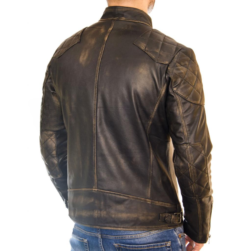 This Men's leather biker jacket combines the vintage look of a biker with all kinds of modern design details. Quilting on the shoulders gives this biker jackets vintage a rugged yet sophisticated mien, perfect for any style-conscious man. Sleek black leather makes for cool confidence, thus adding it to any casual or fairly dressed-up occasion. Whether a motorcycle enthusiast or just admiring the biker edge, this jacket is sure to strike your fancy.