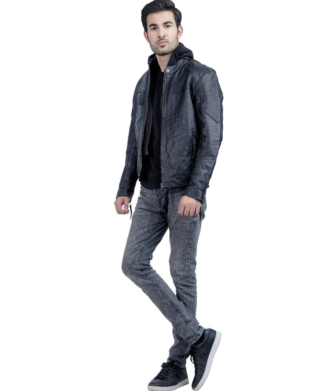 Black Men's Hooded Leather Jacket for a Sophisticated and Elegant Updated Wardrobe