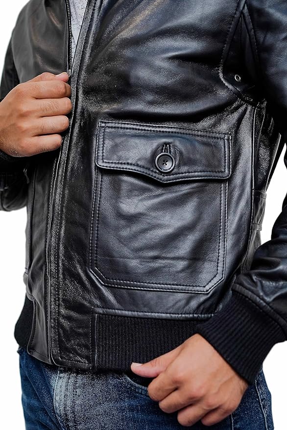 This men's aviator jacket leather was crafted from actual black leather to guarantee durability through the years with utmost comfort. By giving you ample flexibility for the ever-changing seasons, the fur collar on this leather aviator jackets men ensures you are warm on those cold days while adding an elegantly refined look. With a strong front zipper combined with ribbed cuffs as well as a waistband, this jacket ensures a fit that would be highly snug and durable in the long run.